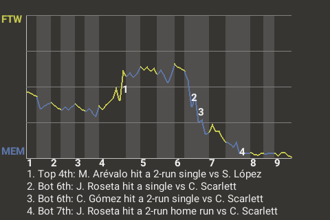 Carlos Gómez had a clutch at-bat with one out in the bottom of the sixth for the Mockingbirds. Coming up with runners on 2nd and 3rd and Memphis trailing 2-1, he hit a 2-run single.