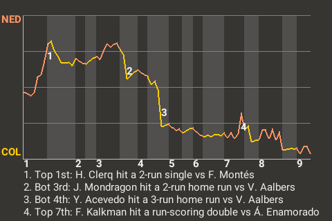 2 (2, 3rd Inning off V. Aalbers, 1 on, 0 outs; 7th Inning off K. van Enk, 0 on, 1 out)