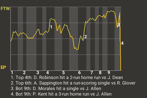 The game was decided with two out in the bottom of the ninth. With Echo Park trailing 6-4, Kent jumped on a fastball from 26-year old left-handed pitcher John Allen and hit a 3-run home run to center. With one swing, the Lakers had a walk-off win.