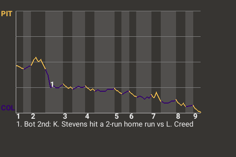Keith Stevens, who is tied for 3rd in the SL with a .392 on-base percentage, took Pittsburgh hurler Lester Creed deep in the bottom of the second. His 2-run home run put the Billy Goats on top, 2-0. In all, Stevens had 1 single in addition to the home run, while going 2 for 4.