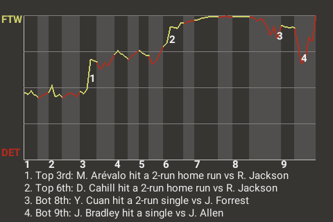 In the top of the third inning, third baseman Mario Arévalo had a 2-run home run for Ft. Worth. It was his 13th home run of the season and put the Cattlemen on top, 2-0.