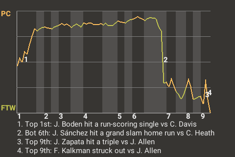 Sánchez had a timely hit for Ft. Worth in the bottom of the sixth. With Ft. Worth trailing 4-1, he turned a 0-1 cutter into a grand slam home run. It was his 12th home run of the season, making it 5-4, Ft. Worth.