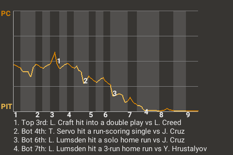 3 (31, 6th Inning off J. Cruz, 0 on, 0 outs; 7th Inning off Y. Hrustalyov, 2 on, 0 outs; 8th Inning off R. Kinmont, 0 on, 1 out)