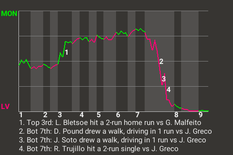 Las Vegas took control in the bottom of the seventh. With two out and the bases loaded, Rafael Trujillo hit a 2-run single to make it 4-2, Flamingos.