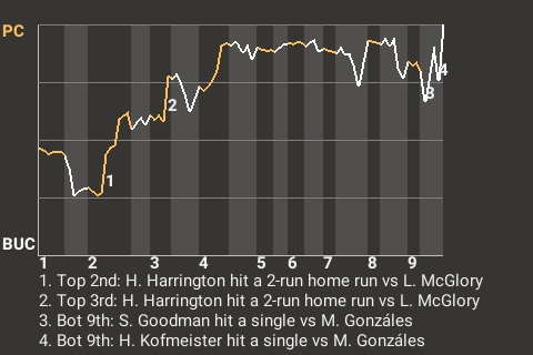 2 (2, 1st Inning off R. Thomas, 1 on, 0 outs; 8th Inning off M. Gonzáles, 1 on, 2 outs)