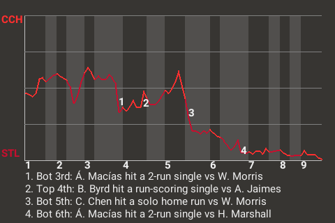 Macías had a consequential at-bat in the bottom of the third for the Coeur. Coming up with the bases loaded and St. Louis trailing 1-0, he hit a 2-run single.