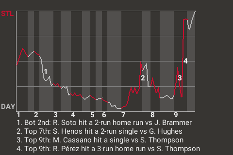 2 (4, 2nd Inning off J. Brammer, 1 on, 0 outs; 7th Inning off D. Farmer, 0 on, 2 outs)