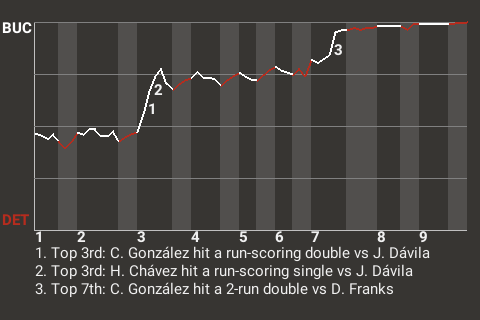 2 (6, 3rd Inning off J. Dávila, 1 on, 0 outs; 7th Inning off D. Franks, 2 on, 1 out)