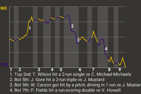 William Carson, who was drafted in the 3rd round of the 2058 draft, aided the Colorado cause with a run-scoring hit-by-pitch in the bottom of the fifth. For the game, the designated hitter drew 1 walk.