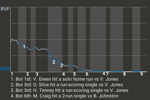 With one out in the top of the eighth, Godspower Nwawuihe had a chance to do some damage. Buffalo was trailing 13-0, but had the bases loaded. Nwawuihe came to the plate against Orlando Díaz, and hit a sacrifice fly. But it was not enough to complete a Buffalo comeback.