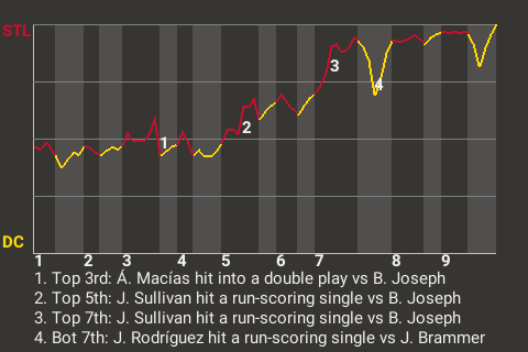 John Sullivan had a direct impact on the outcome. Sullivan contributed a run-scoring single in the top of the seventh inning to put St. Louis up, 2-0.
