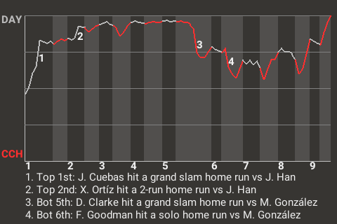 In the first inning, Cuebas had a grand slam home run for Dayton. It was his 7th home run of the season and put the Dirty Reds on top, 4-0.
