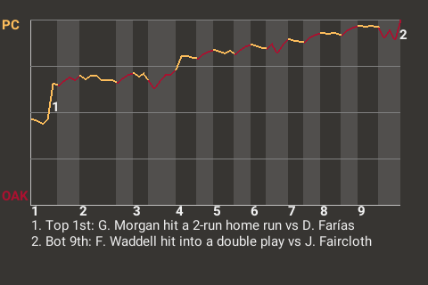 2 (9, 6th Inning off J. Faircloth, 0 on, 1 out; 9th Inning off J. Faircloth, 0 on, 0 outs)