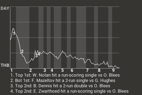 2 (9, 1st Inning off O. Blees, 0 on, 0 outs; 2nd Inning off O. Blees, 3 on, 1 out)