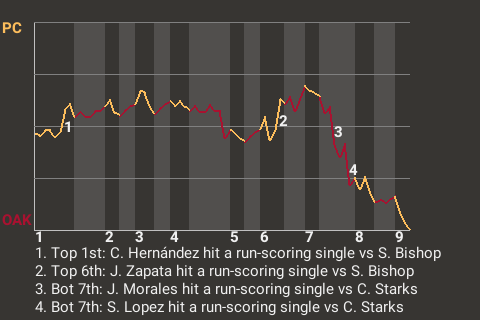 In the bottom of the seventh, Oakland first baseman Samuel Lopez hit a run-scoring single to center field. The clutch hit made it 3-2, Oaks.