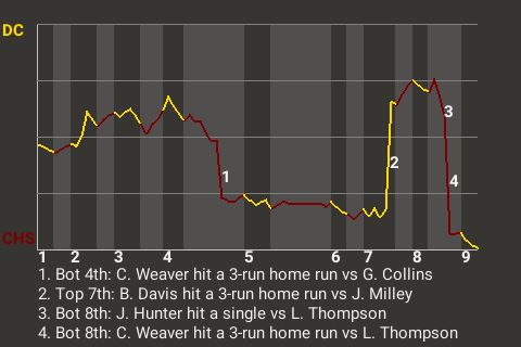 Weaver had a game-changing home run in the bottom of the eighth. On a first pitch fastball from Lou Thompson, he banged a 3-run home run to left, giving the Battery a 6-4 lead. It was the 9th home run of the year for Weaver.