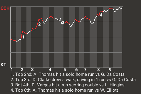 2 (2, 2nd Inning off G. Da Costa, 0 on, 0 outs; 8th Inning off W. Elliott, 0 on, 1 out)