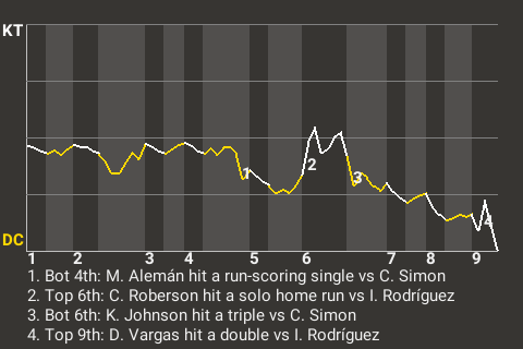(9, 6th Inning off I. Rodríguez, 0 on, 0 outs)