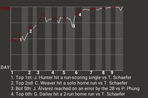 (1, 6th Inning off T. Schaefer, 1 on, 1 out)