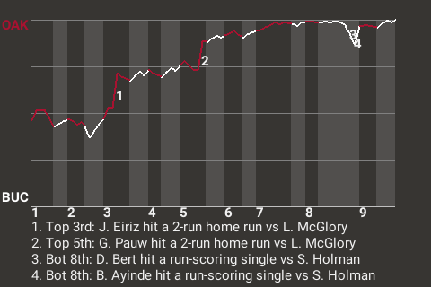 José Eiriz cracked a home run off Lloyd McGlory in the top of the third. His 2-run blast put the Oaks on top, 2-0. In all, Eiriz had 1 single in addition to the home run, while going 2 for 3.