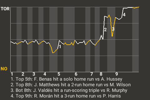 Toronto needed the clutch hitting of John Matthews to notch the win. The right fielder hammered a 2-run home run in the top of the eighth inning to put the Thunder on top, 3-1. For the game, Matthews had 1 home run and 1 single in 5 at-bats.