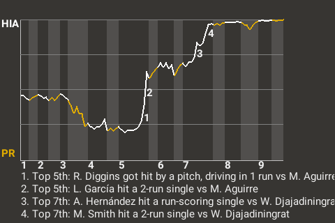 a - T. Blevins pinch ran for L. Hernández in the 8th