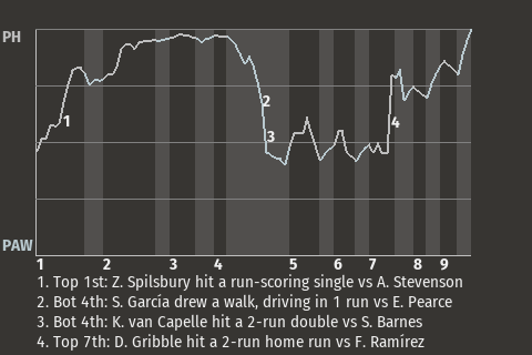 Pawnee second baseman Vince Taylor contributed a timely at-bat in the bottom of the sixth. With two down, he hit a slider to center field for a run-scoring single. It was his 20th hit of the season and put the ParksNRec ahead, 3-2.