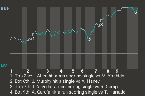 (1, 9th Inning off R. Camp, 1 on, 0 outs)