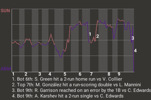 2 (5, 5th Inning off W. Maxwell, 1 on, 2 outs; 7th Inning off J. Ramírez, 1 on, 0 outs)