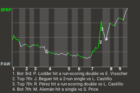 a - P. Jiménez pinch hit for B. Childress in the 8th