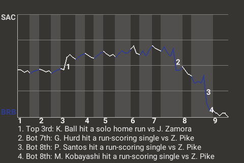 2 (4, 1st Inning off J. Casey, 0 on, 1 out; 7th Inning off J. Zamora, 1 on, 1 out)