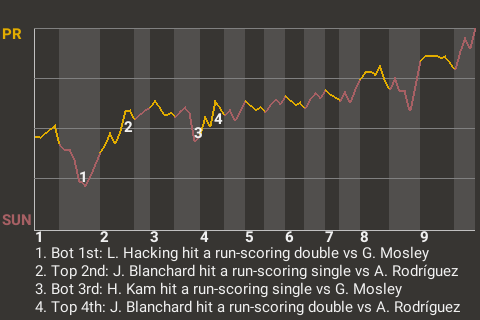 (5, 9th Inning off F. Hull, 0 on, 0 outs)