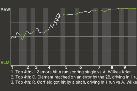 (9, 8th Inning off W. Brown, 0 on, 0 outs)