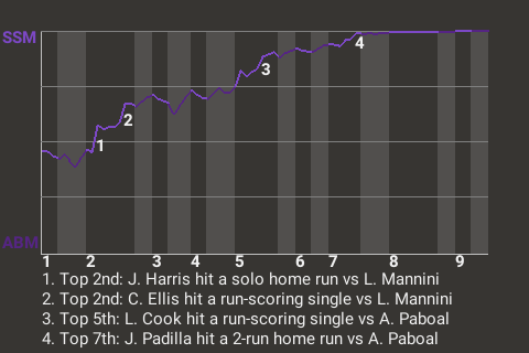 (9, 8th Inning off J. Ramírez, 2 on, 1 out)