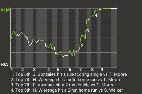 2 (4, 8th Inning off J. Martin, 0 on, 0 outs; 9th Inning off R. Nelson, 1 on, 1 out)