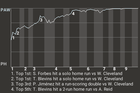 2 (4, 1st Inning off W. Cleveland, 0 on, 2 outs; 5th Inning off A. Reid, 1 on, 0 outs)