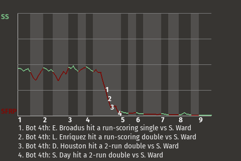 The Redlegs got a big at-bat from shortstop Júlio Salinas. For the game, Salinas was 1 for 2 with a home run and a walk. He drove in 2 runs and scored once. In the bottom of the fourth, with a runner on 1st, he stroked a 2-run home run. His 2nd home run of the season gave Sacramento a 3-1 lead.