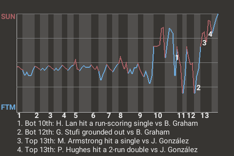 (12, 13th Inning off J. González, 2 on, 1 out)