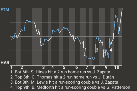 2 (14, 6th Inning off W. Morris, 0 on, 0 outs; 8th Inning off C. van den Akker, 0 on, 2 outs)