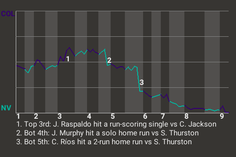 Jackson was in the zone, shutting down Colorado hitters over 8 innings. Jackson, who threw 102 pitches, allowed 1 run on 4 hits. He also tallied 6 punchouts.