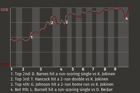 The Salt Lake City Buzz withstood a fine game by Sunset District first baseman Chris Rodríguez at Spirits Stadium, to upend the Fog, 7-3. Rodríguez went 3 for 3 with 3 singles and a walk, while adding 2 RBI. Manny Guerra got the save, the 3rd for him this season. The 7th-place Buzz are now 30-29, the Fog 33-26.