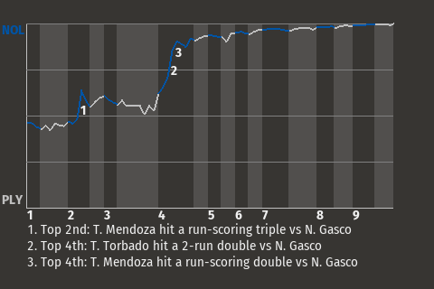 2 (4, 2nd Inning off R. Hernández, 0 on, 0 outs; 10th Inning off R. Poynter, 2 on, 0 outs)