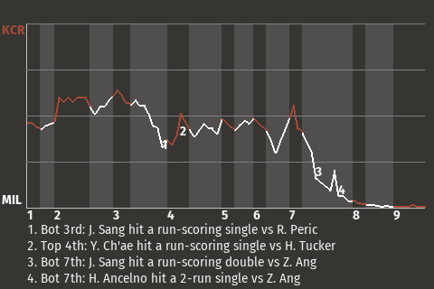 (1, 9th Inning off K. Irvin, 0 on, 0 outs)