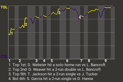 Toledo used a well-timed hit by Don Weaver to capture the win. The second baseman socked a 2-run double in the top of the second inning to put the Stingers ahead, 3-0. Though it was his only hit in 4 at-bats, it was important.