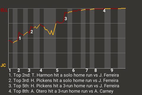 2 (4, 1st Inning off M. Edwards, 0 on, 0 outs; 9th Inning off J. Vargas, 0 on, 0 outs)
