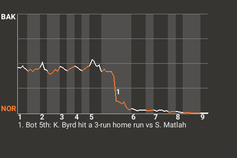 2 (8, 2nd Inning off F. Encarnación, 3 on, 1 out; 4th Inning off K. Johnston, 0 on, 0 outs)