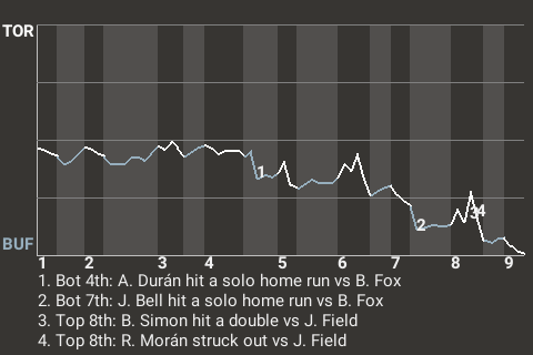 The Thunder had been locked in a 0-0 tie with the White Walkers going into the bottom of the fourth inning. That changed quickly when the 2051 Newcomer of the Year Award winner Andrés Durán came to the plate. Durán hit a solo home run on a first pitch fastball from Toronto hurler Brandon Fox. It was Durán's 5th home run of the year.