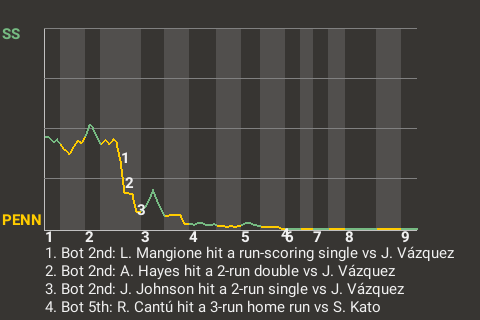 Johnson had a game-changing home run in the top of the eighth. On a 2-2 fastball from Ricardo Gamera, he banged a 3-run home run to left-center, giving the Squirrel Monkeys a 7-4 lead. It was the 1st home run of the year for Johnson.