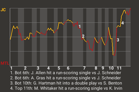 The most important at-bat for Jersey City came in the top of the 11th inning, when shortstop Merrill Whitaker stroked a 2-2 fastball to center for a run-scoring single, putting Jersey City up, 5-4.