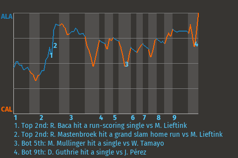 2 (8, 2nd Inning off M. Roach, 2 on, 2 outs; 6th Inning off M. Roach, 2 on, 2 outs)